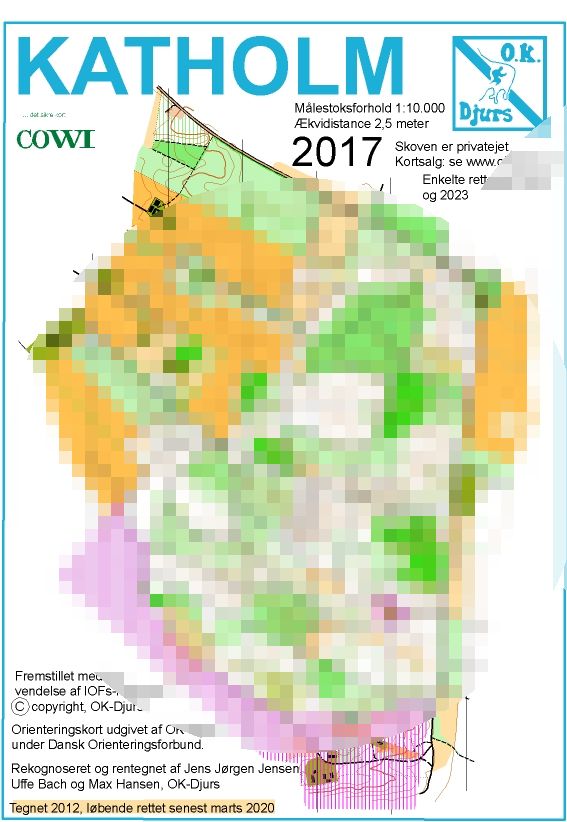 Katholm skoven ligger syd for Grenaa og ud til Kattegat. Kortet blev senest nyrevideret i 2017 og efterfølgende er der lavet enkelte rettelser. Skoven er privatejet og vises derfor ikke tydeligt her.